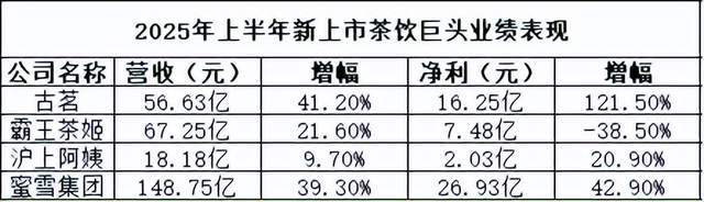 这一年,古茗、蜜雪集团、霸王茶姬、沪上阿姨四家头部品牌扎堆登陆资本市场,上演了史无前例的“集体IPO”。蜜雪冰城港股上市首日市值即破千亿港元,霸王茶姬成为“新茶饮美股第一股”。六大上市茶饮巨头2025年上半年合计净利润突破55亿元,交出了一份傲人的成绩单。