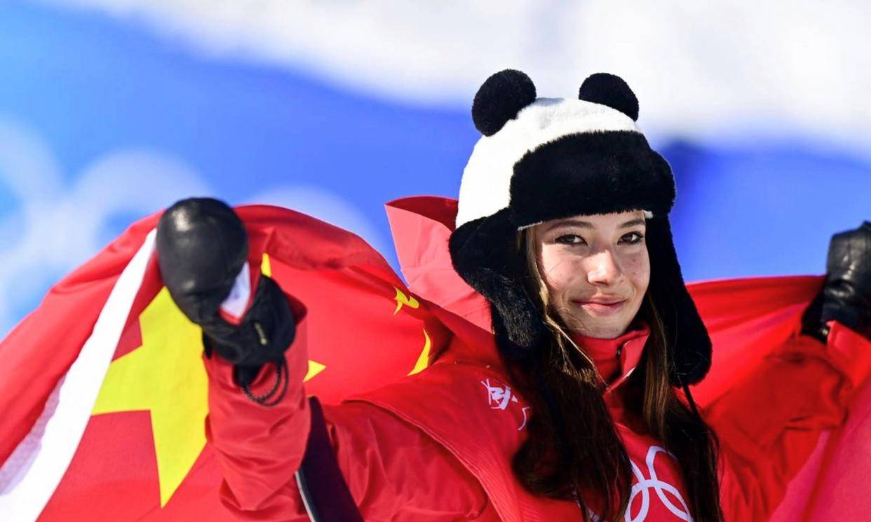 谷爱凌第一个滑,首跳选右转1440抓板,冲下去、起跳、转体、抓板、落地,整个动作顺得不行,身体稳稳的,没啥晃,裁判直接给了86。00分,当时她排在前面,现场解说都开始聊她卫冕的事了。可比赛哪有那么简单。